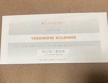 東京都中央区に本社を構える**株式会社吉野家ホールディングス(証券コード:9861)**から、配当金の入金がありました。