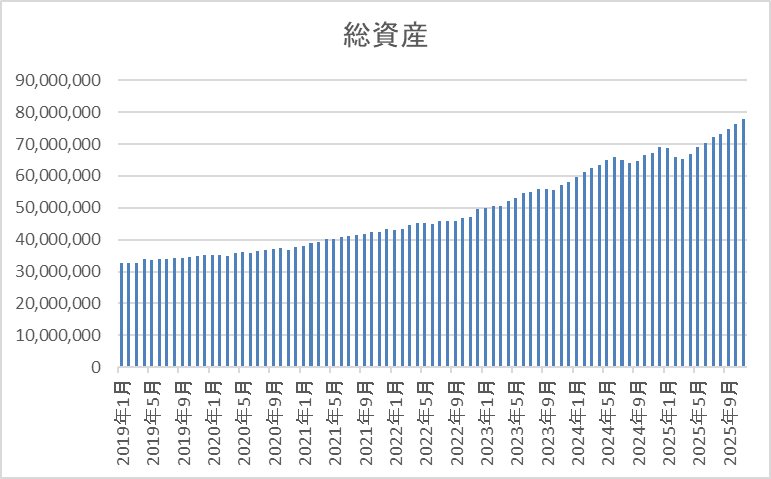 2025年11月末現在、私の総資産額は77,957,215円となりました。
