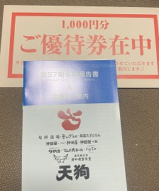 私は 100株保有 のため、今回も 1,000円分の無料飲食券 をいただきました。