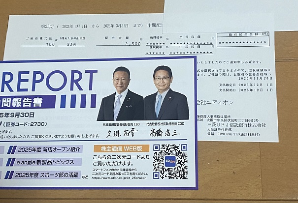 今後も継続してエディオン株を保有し、企業の成長と株主還元の充実を長期的に見守っていきたいと考えています。