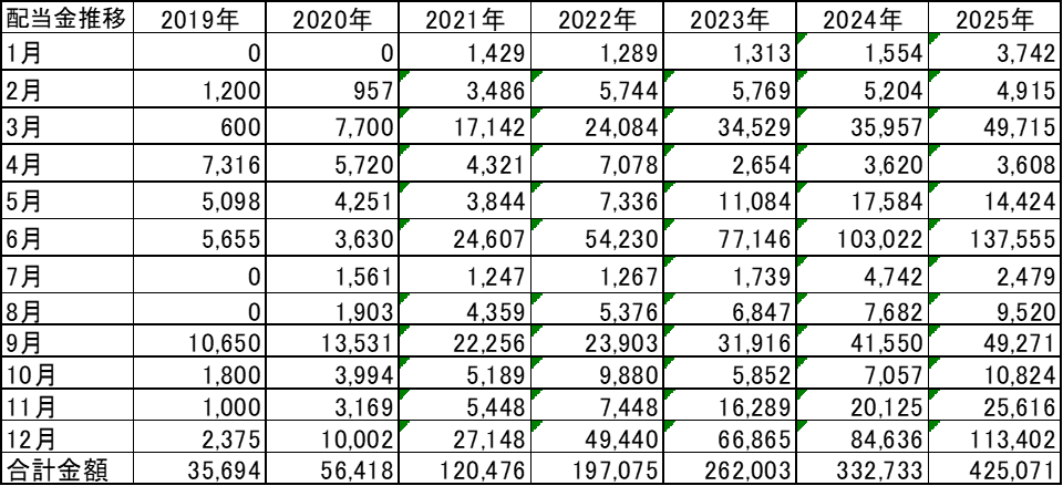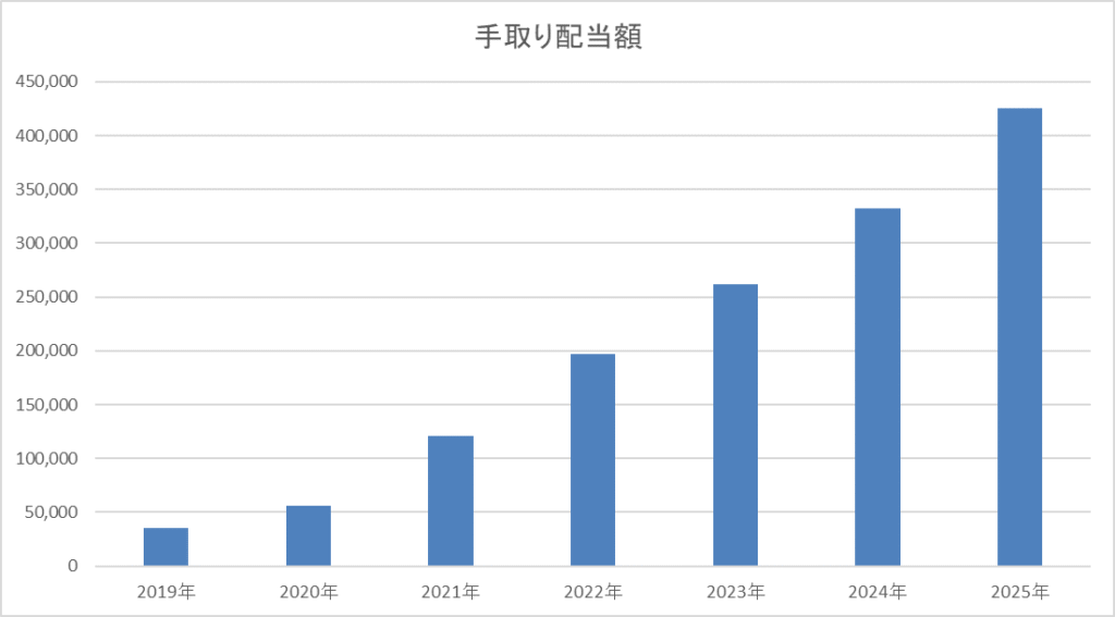 2019年からの受取配当金の表を上記に添付しました。(税引き後手取り)