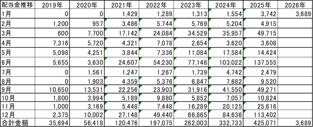 1月の配当金は、合計3,689円でした!