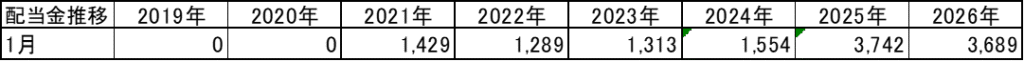 1月の配当金報告