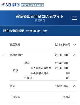 ※12月末時点では評価益1,594,266円、損益率75.7%だったため、1か月で資産は約0.1%増加しました。