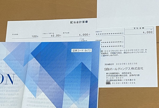 多くの個人投資家が利用しているSBI証券。その親会社であるSBIホールディングスから配当金が入金されました。