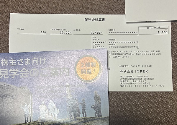 東京都港区に本社を構える**INPEX(1605)**から、配当金の入金がありました。
