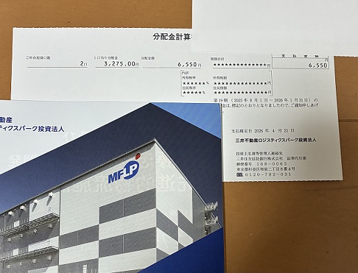 三井不動産ロジスティクスパーク投資法人から分配金と資産運用報告が届きました