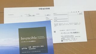 インヴィンシブル投資法人から分配金と資産運用報告が届きました
